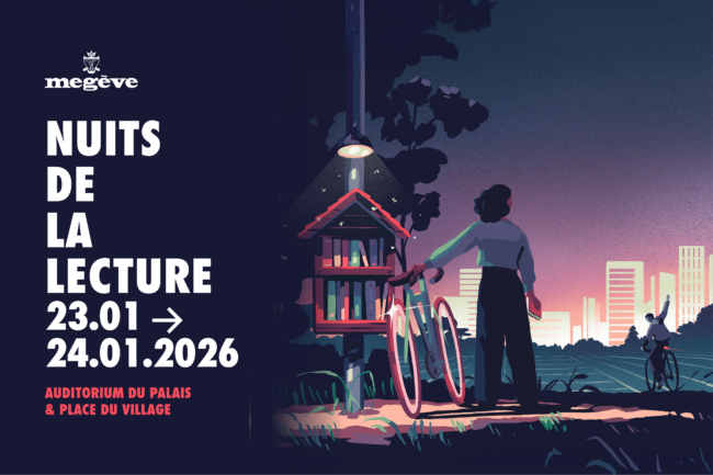 À l’occasion de l’événement national « Les Nuits de la lecture » proposées par le Centre national du livre et le ministère de la Culture, Megève a souhaité prendre part à la démarche en organisant différents rendez-vous sur les journées des 23 et 24 janvier. Vendredi 23 Lectures théâtralisées autour des ouvrages du docteur Charles Socquet « L’homme, la nature, les traditions » Animées par la Compagnie Novecento, Franck Adrien & Nadia Larbiouene avec musique, chant et témoignage de Lucien Morand Lieu : Auditorium | Entrée gratuite dans la limite des places disponibles Quand : à 9h15 – 11h – 14h30 (rencontre intergénérationnelle avec les séniors des après-midi bleus) Pour qui : ouvertes aux scolaires et à tout public   Samedi 24 Rencontre “Coups de coeur 2026” des lecteurs et des bibliothécaires Un livre, un magazine, un CD ou un jeu vous a marqué ? Envie d’échanger autour de vos lectures et découvertes culturelles ? Venez partager vos coups de coeur dans une ambiance conviviale ! Lieu : Médiathèque | Accès libre dans la limite des places disponibles Quand : de 17h00 à 18h30 Pour qui : tout public   Lectures théâtralisées autour des ouvrages du docteur Charles Socquet « L’homme, la nature, les traditions » Animées par la Compagnie Novecento, Franck Adrien & Nadia Larbiouene avec musique, chant et témoignage de Lucien Morand Lieu : Rendez-vous place du village, près du sapin pour une déambulation nocturne dans des lieux insolites du village. Quand : à 19h Pour qui : tout public La déambulation sera suivie d’un apéritif savoyard traditionnel au Presbytère à partir de 20h (Inscription conseillée).   Renseignements et inscription apéritif : Responsable Développement Durable Tél : 06 63 33 77 70