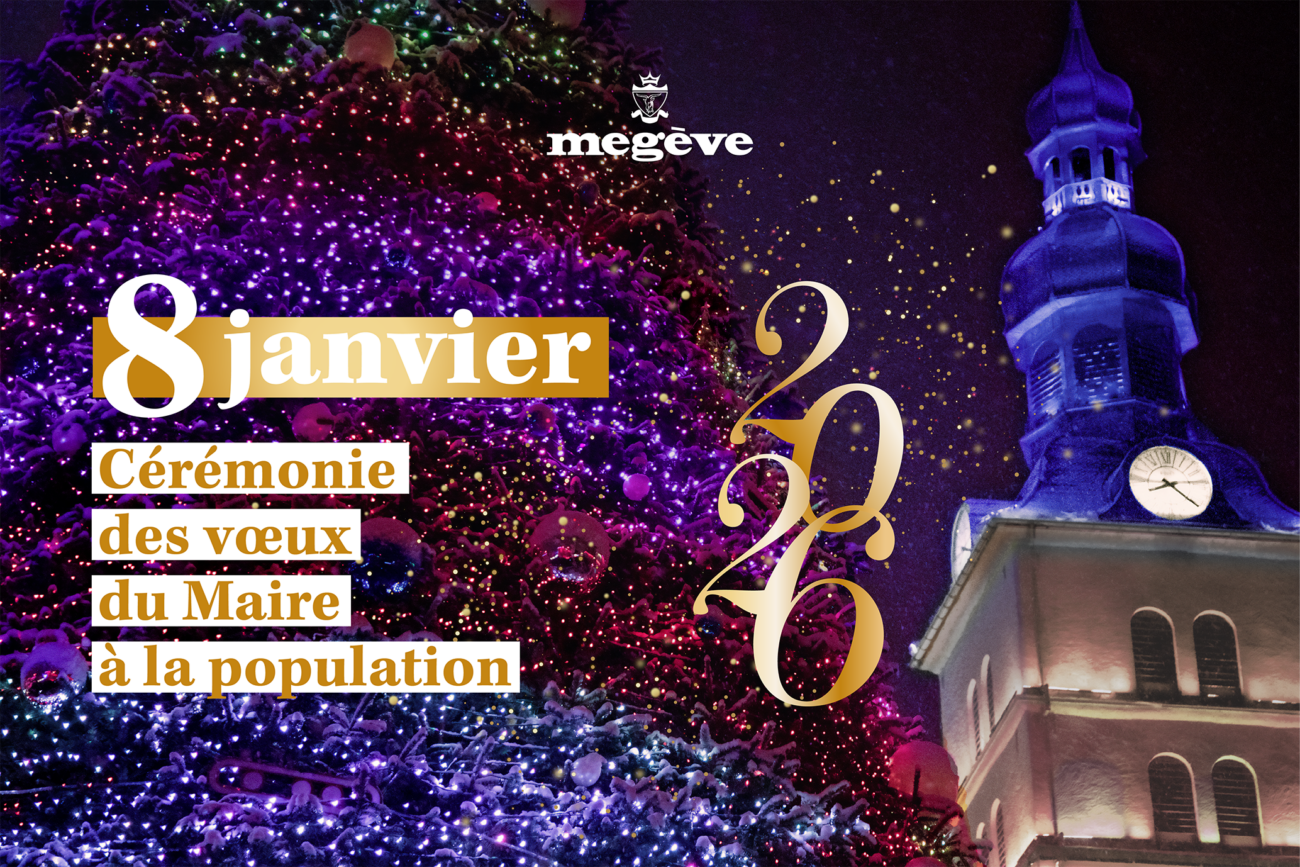 Madame le Maire de Megève vous convie jeudi 8 janvier 2026 à la Cérémonie des Vœux du Maire à la population. Elle se tiendra dans la salle Mageva, au Palais, à 19h30.