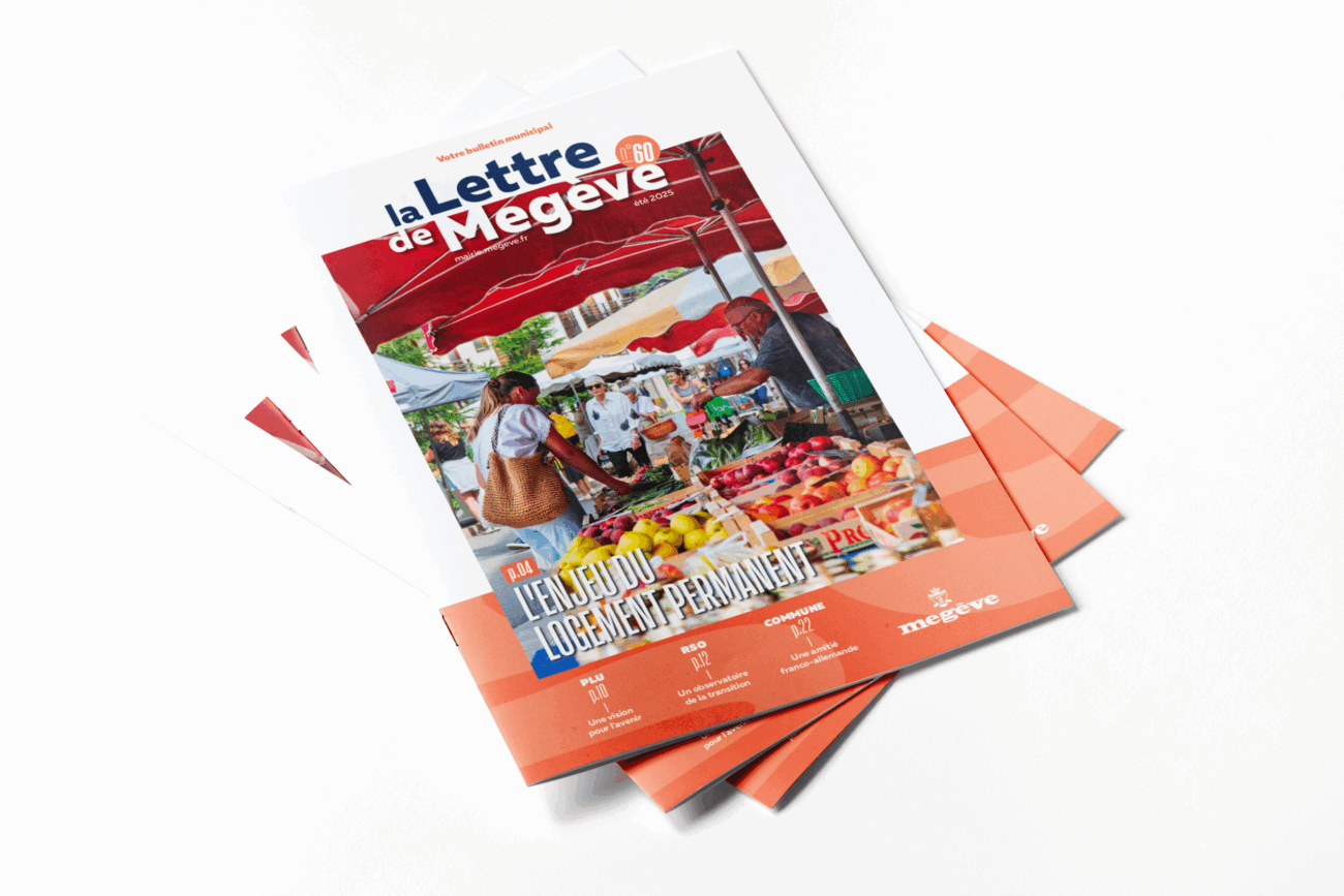 Le nouveau numéro de la Lettre de Megève est actuellement en cours de distribution sur la commune. Vous souhaitez feuilleter d’ores et déjà les pages de cette édition n°60, consultez dès aujourd’hui le dernier bulletin municipal sur le site, sous l’onglet « Je télécharge un document » ou directement au travers de la visionneuse ci-dessous. Vous pouvez également le télécharger via ce lien.